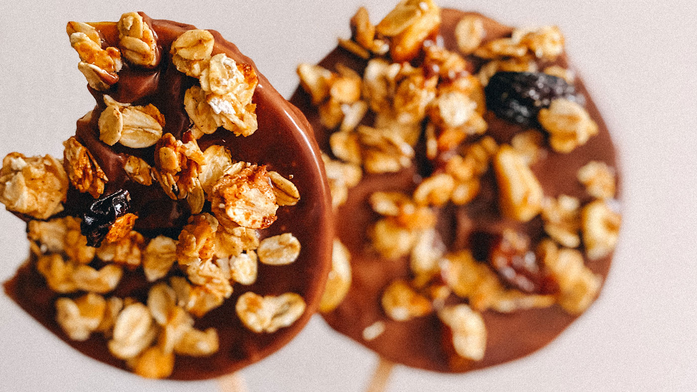Presărăm imediat cu granola la alegere (clasică, cocos sau ciocolată).