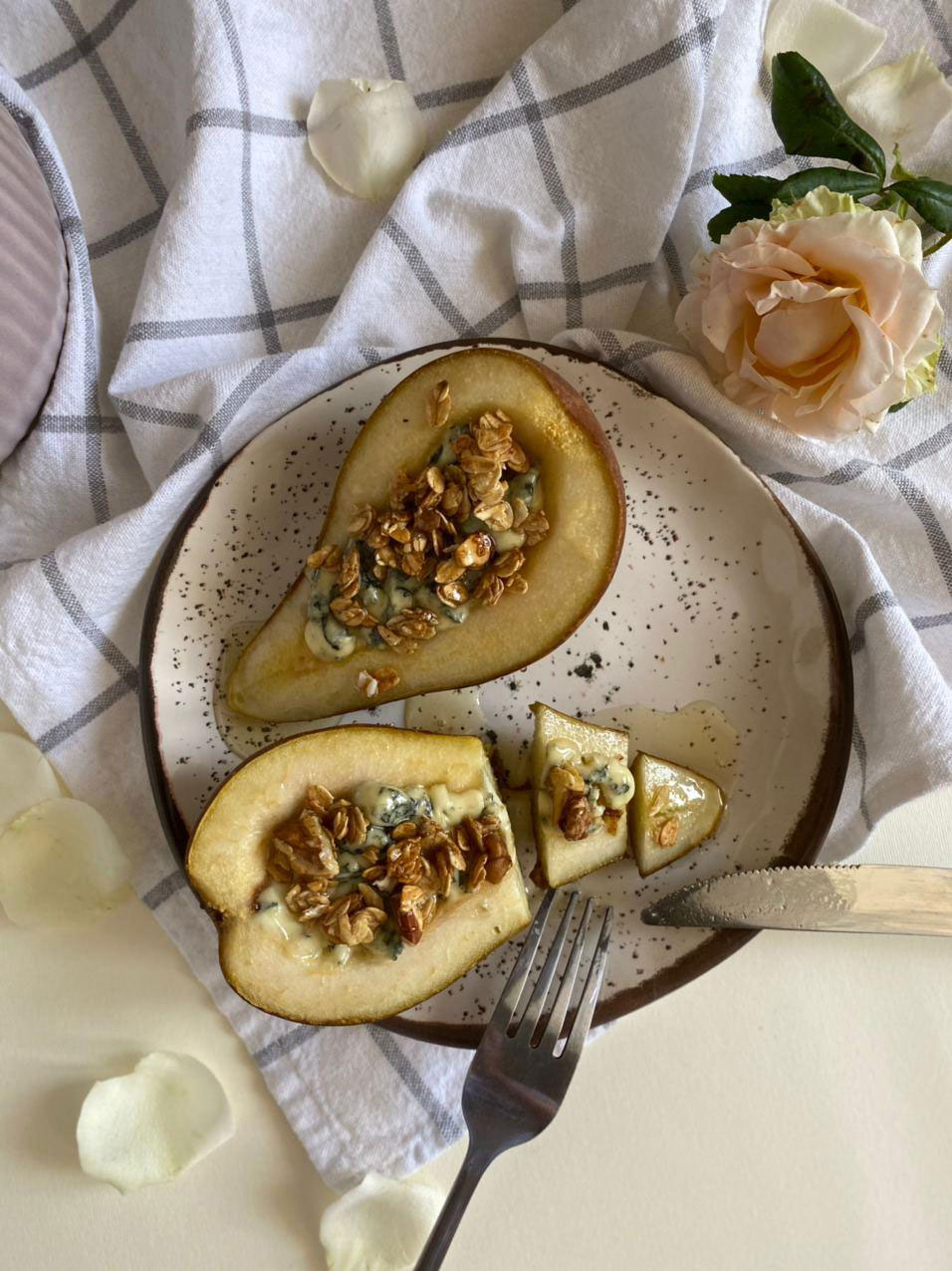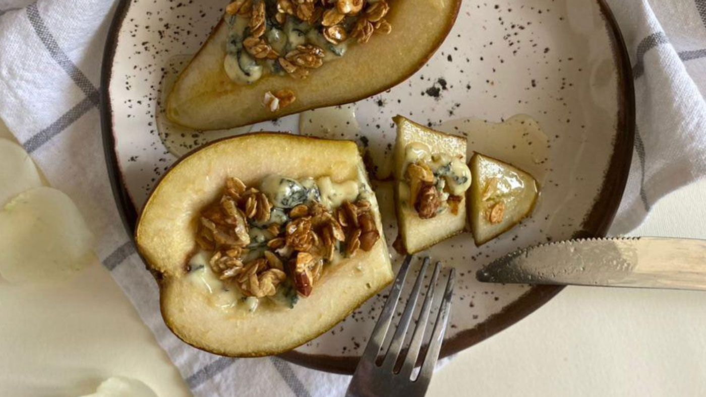 Folosind un cuțit mic, se taie miezul din pară și se umple cu brânză sau cașcaval.