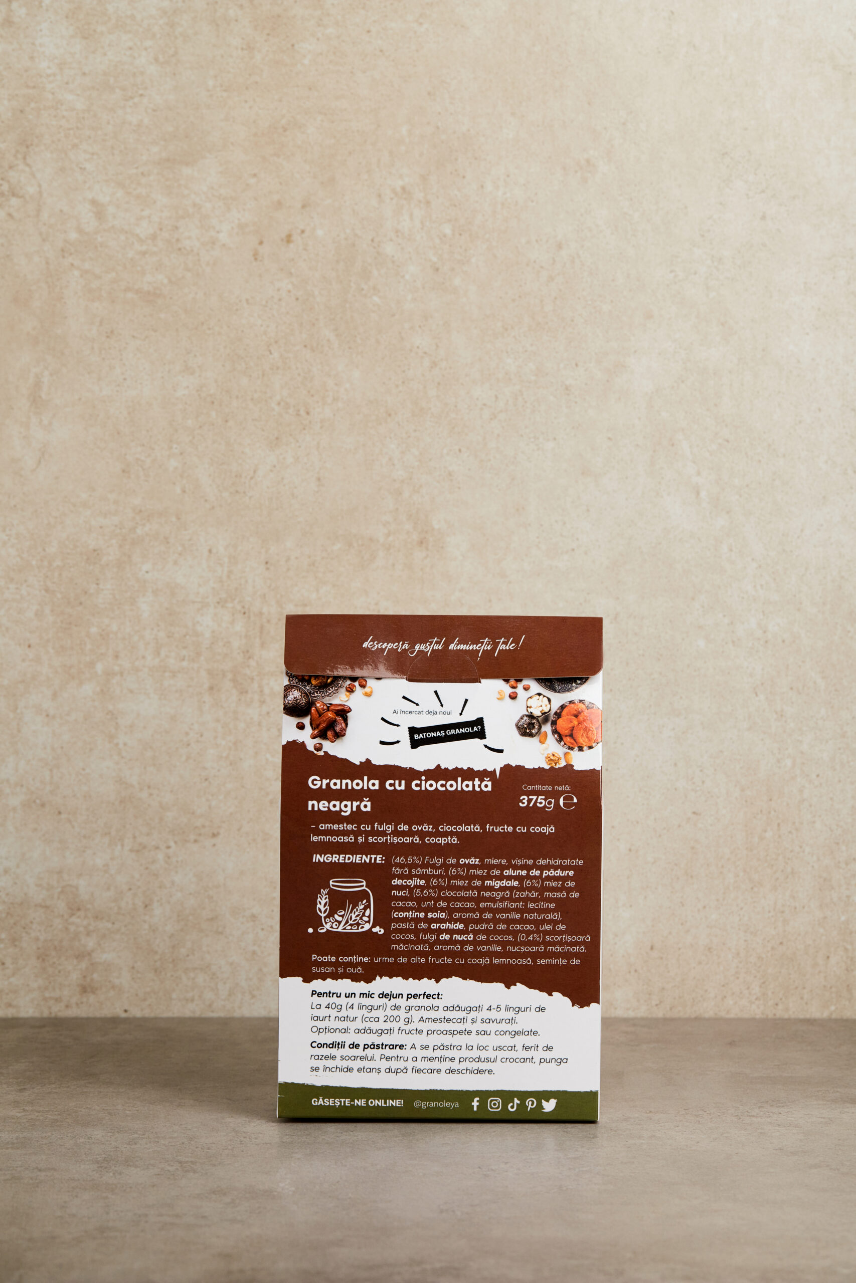 Cine poate rezista ciocolatei? Dacă și tu o iubești, granola noastră cu ciocolată e alegerea perfectă! Combinația dintre dulceața fină a mierii, notele acrișoare ale vișinelor și aroma ușor amăruie a ciocolatei creează un gust absolut încântător. Nu este prea dulce, ci exact cât trebuie – echilibrată și pur și simplu fantastică. O adevărată desfătare pentru iubitorii de ciocolată!